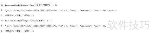2、 只要符合 \$in 条件的元素均可被查询到