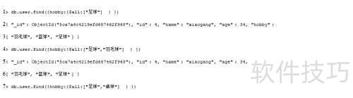 3、 用于查询数组中包含全部指定元素的数据,仅当所有条件都满足时才返回结果,只要有一个元素不匹配即不显示,必须完全符合列表中的所有条件才能获取对应数据。