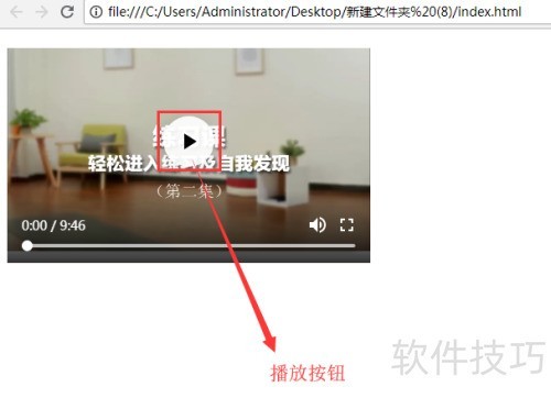 5、 用浏览器打开HTML文件,观看视频效果,如所示即完成video标签的基本应用。