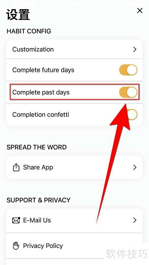 3、 当后的圆点变成黄色,说明习惯追踪器的完成过去日期功能已成功启用。