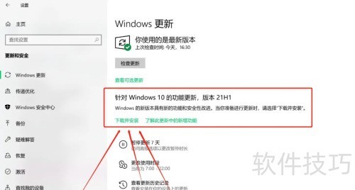 3、 若有新版本会自动显示,点击下载安装,进入Windows更新,选择检查更新即可。