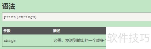 3、 print() 函数用于显示一个或多个字符串内容,如示例图所示。