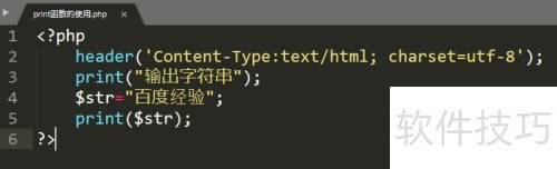 5、 使用 print() 函数输出字符串,示例代码为:print(\$str);
