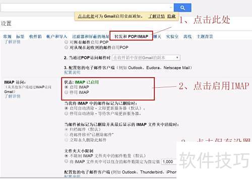 5、 开启全部邮件的POP功能或启用IMAP服务选项。