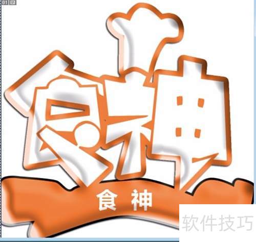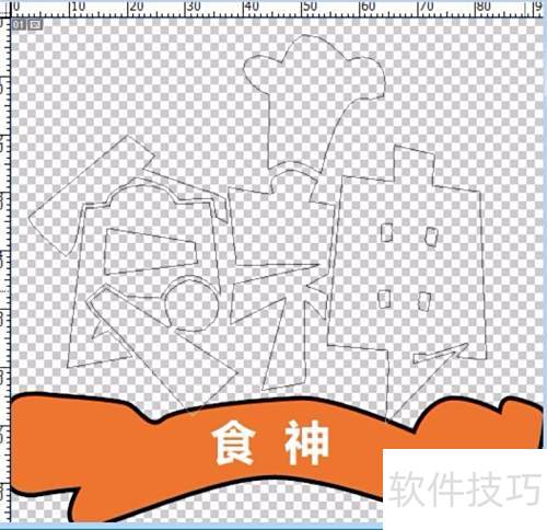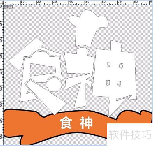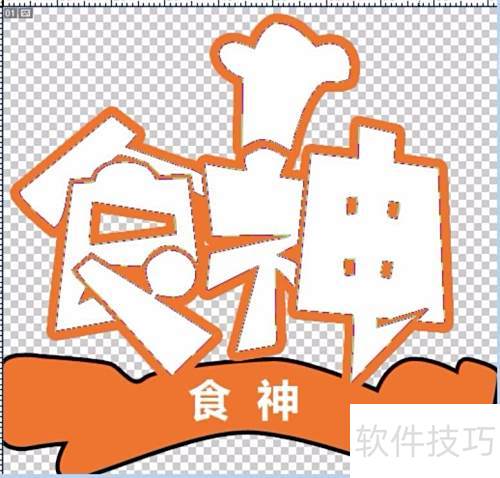 3、 将两个文字以路径形式绘制,借鉴黑体字形,拉长笔画边缘,并将神字的一点转化为厨师帽造型,通过这种创意变形,使字体呈现出富有动感与趣味的美食主题视觉风格,契合美食POP的设计特征。