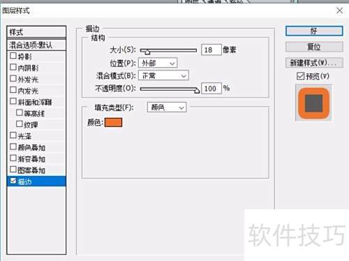 4、 将前景色设为白色,填充文字路径,形成白色文字效果。接着在文字图层中,选用橙色作为描边颜色,调整合适的描边粗细,使文字轮廓清晰鲜明,整体视觉效果更加突出和生动。