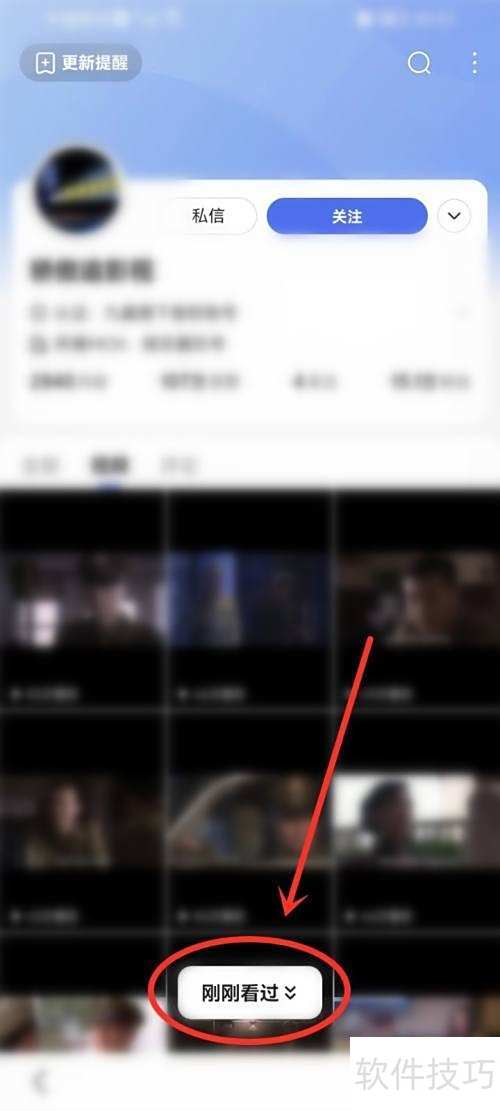 3、 进入作者主页,下滑至底部点击刚刚看过图标即可。