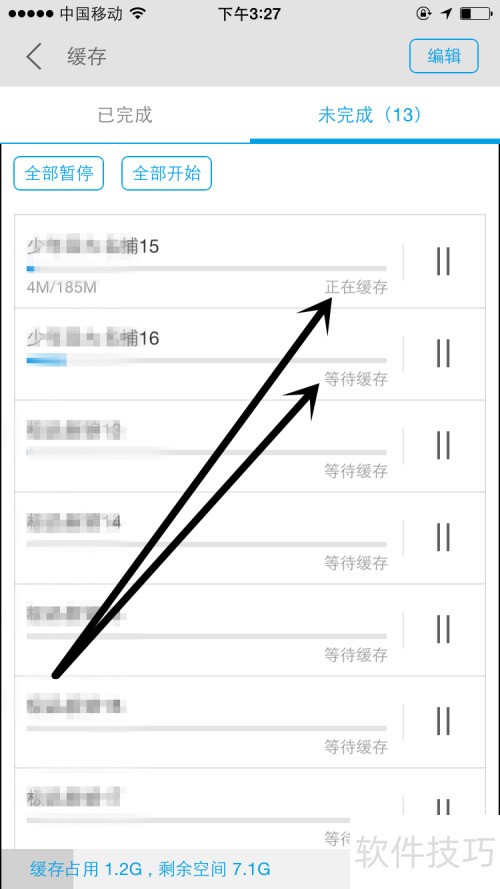 3、 此时可查看并发缓存任务数量,并进行选择操作。