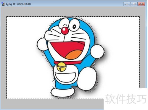 5、 点击选择菜单中的反向选项,选中机器猫所在区域。