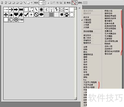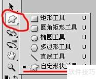 6、 关闭并重启Photoshop CS后,之前载入的图片将出现在自定义图形菜单中,以后无需重复导入,可直接调用使用,方便快捷。