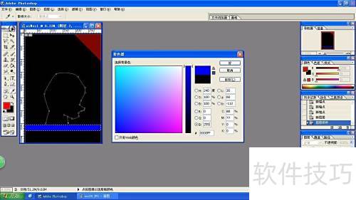 1、 先搜索Photoshop绘制人头教程,将前景色设为红色,背景色调整为蓝色。