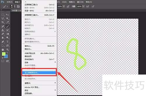 4、 点击菜单中的,可将所绘图案保存为自定义画笔形状,具体操作所示。