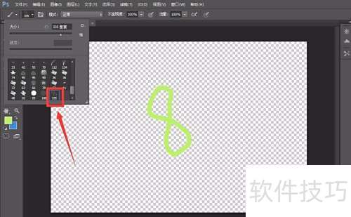 2、 在左侧工具栏中选取画笔工具,并调整其相关属性。