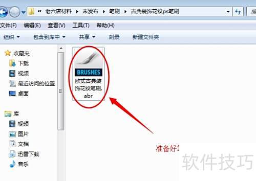 1、 准备一个后缀名为.abr的笔刷文件即可。