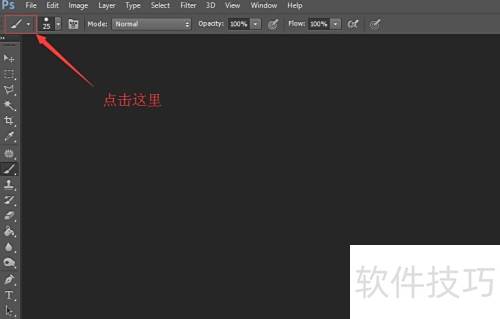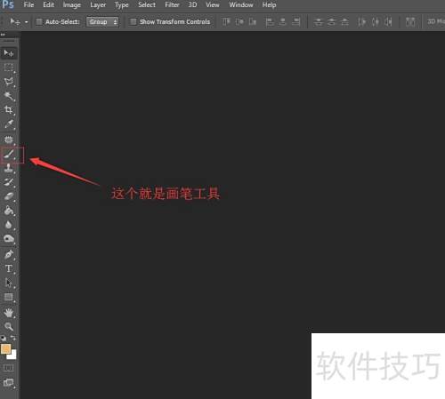 2、 在左侧工具栏中找到画笔工具,位置所示。