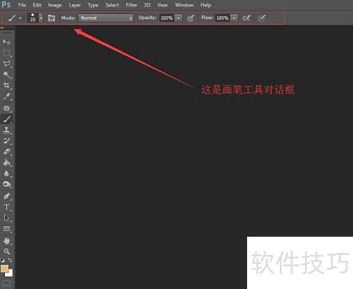 3、 选择画笔工具后,其设置对话框即会显示,所示。