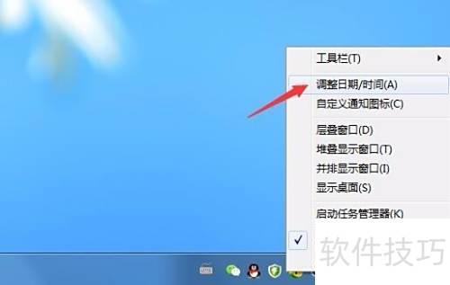 2、 右键点击右下角时间,选择调整日期/时间即可进入设置,轻松添加第二个时钟显示。