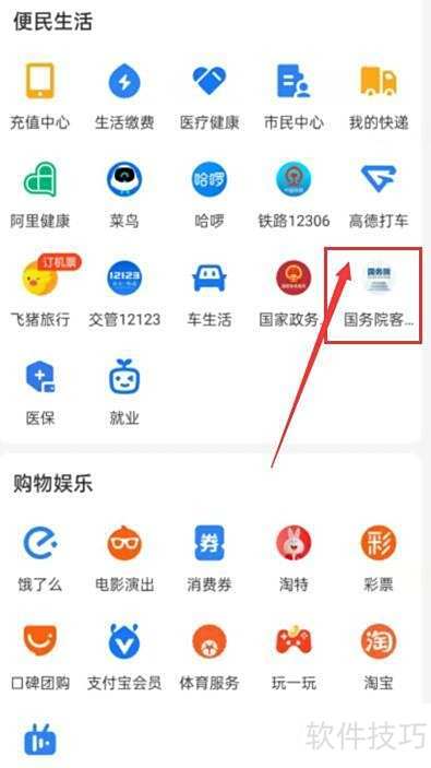 1、 进入支付宝后,点击国务院客户端即可打开。