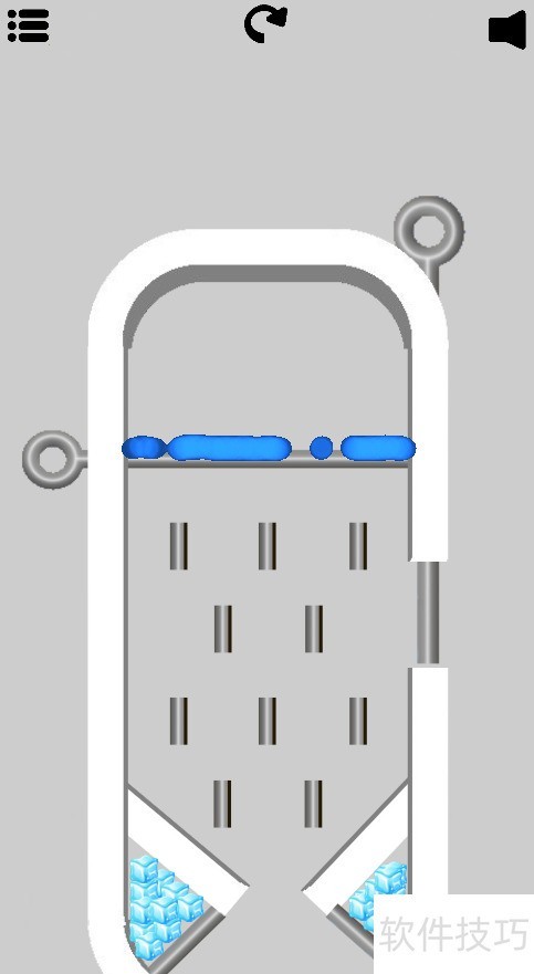 1、 先打开左侧冰块下方的斜插销,见图示。
