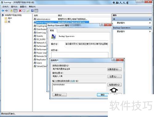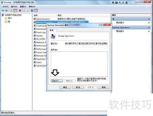 5、 找到备份操作员账户,该账户可绕过安全限制进行文件备份与还原,右键点击后选择添加到组即可。