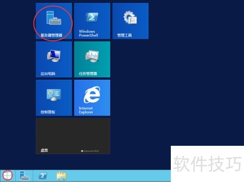 1、 点击开始菜单,选择服务器管理器。