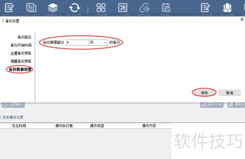 14、 点击左侧的备份数据清理,根据磁盘空间和备份文件大小设定清理周期,此步骤必填,完成后点击保存即可。