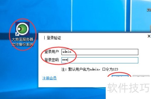 8、 备份操作十分简便,此处不再赘述。鉴于常规备份方式存在诸多限制,现推荐一款专业的服务器文件备份工具。首先通过百度搜索下载大势至服务器文件备份系统,完成安装后,回到桌面双击快捷方式启动程序,按照界面提示输入账号与密码,确认即可进入系统,后续可依照向导完成各项备份设置,实现高效稳定的文件保护。