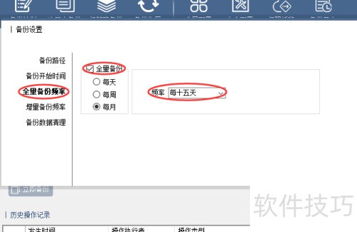 12、 在左侧选择全量备份频率,右侧勾选全量备份选项并设定具体频率。