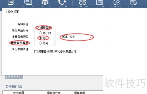 13、 选择增量备份频率,勾选右侧的增量备份选项,并设定较高频率,通常增量备份比全量备份更频繁。