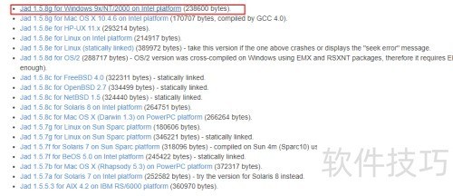 6、 前往 http://varaneckas.com/jad/ 下载 jad 的可执行文件,解压后存放到任意磁盘目录,并根据自己的操作系统选择对应的版本。
