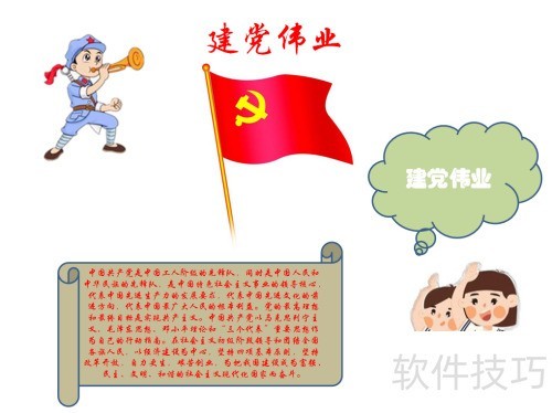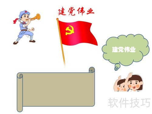 1、 在顶部书写建党伟业作为标题。