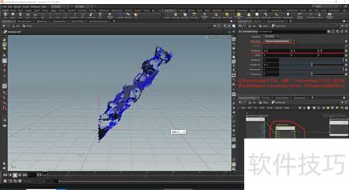 14、 打开pointvop节点,新建一个turbnoise节点,将模式设置为Sparse Convolution Noise,并将所有频率参数调整为2.5。