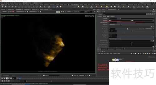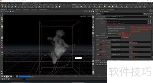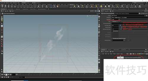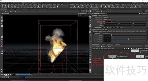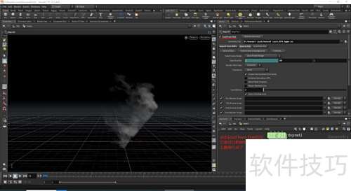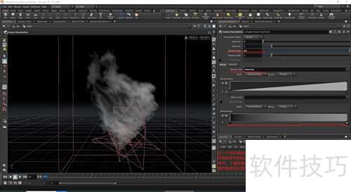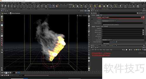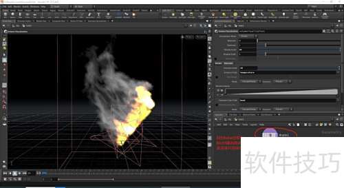 22、 添加体积场节点volumerasterizeattributes,将群组设置为粒子,作用于fuel、temperature、v、Cd和Alpha等属性,实现对这些参数的动态影响与控制。