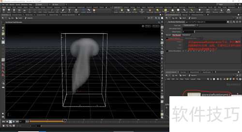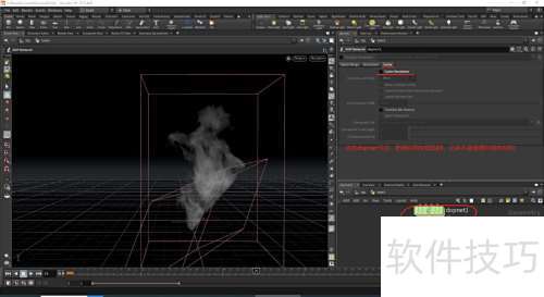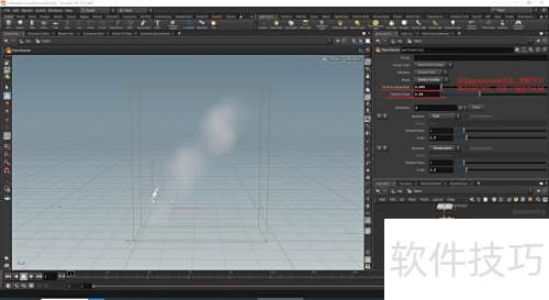 29、 选中smokeobject节点,将细分缩放设为0.1,整体缩放调整至1.5,仅保留-Y轴封闭,烟雾密度修改为3。