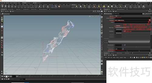 24、 调整pyrosource节点参数,将粒子分离设为0.005,粒子缩放设置为3.64。