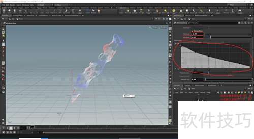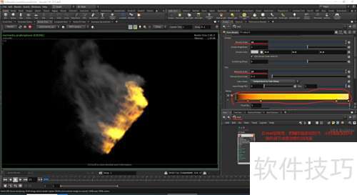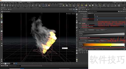 54、 将火焰渲染的目标范围设为0至1.2,曲线调成上下陡峭的形态。