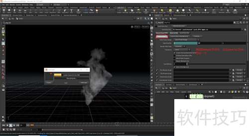 28、 选择volumesource节点,将Initialize参数更改为Source Fuel,以适应火焰效果制作,随后在SOP Path的第二个下拉箭头中导入名为OUT_pyro的节点组。