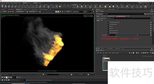 35、 调整pyrosolver节点的火焰数值,根据精度设置使效果更自然,具体操作所示。
