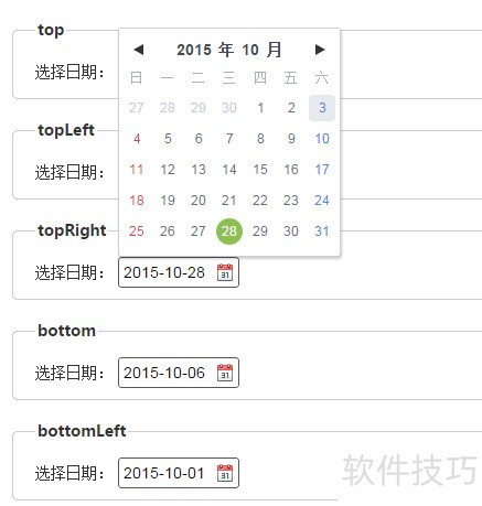 38、 可通过参数的position属性或标签的data-position属性,设定选择器的显示位置。