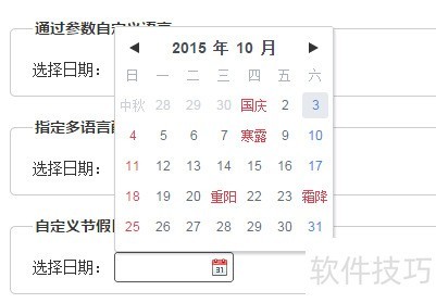 31、 加载jquery.cxcalendar.languages.js后,系统将自动识别用户语言环境并显示相应界面语言。