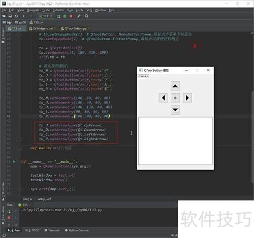 13、 通过调用 setArrowType(self, Qt.ArrowType) 设置图标中箭头的指向。