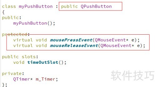 8、 通过继承QPushButton并重写其点击事件,利用鼠标按下与释放的特性实现自定义功能。