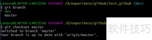 1、 创建标签时需先切换至目标分支。若要为master分支添加标签,应先执行git branch命令查看当前所在分支,确认后使用git checkout master切换到master分支,随后进行标签创建操作,具体步骤所示。