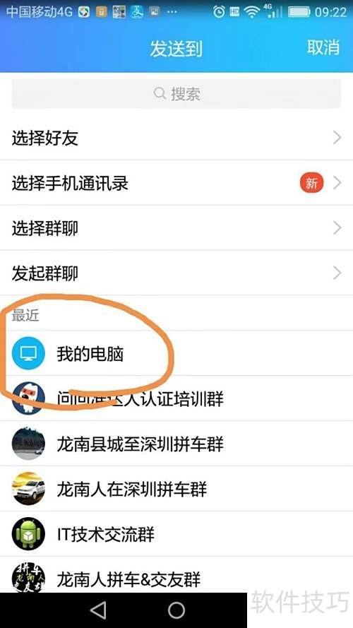 12、 在电脑登录QQ后,打开手机QQ的分享功能,选择我的电脑并点击,即可完成文件发送。