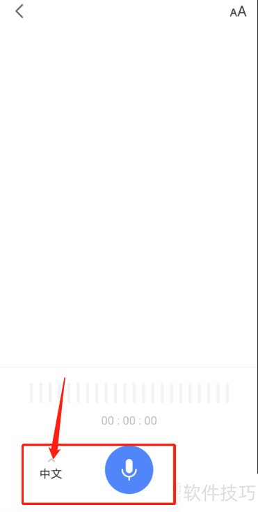 2、 在录音界面左下角点击中文,可选择其他需转换的语音文字,所示。