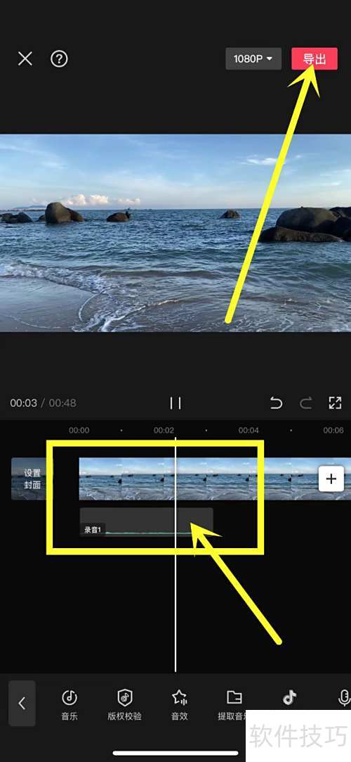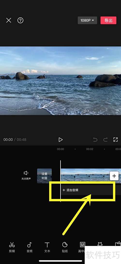 2、 进入视频编辑界面,点击视频下方的添加音频按钮。