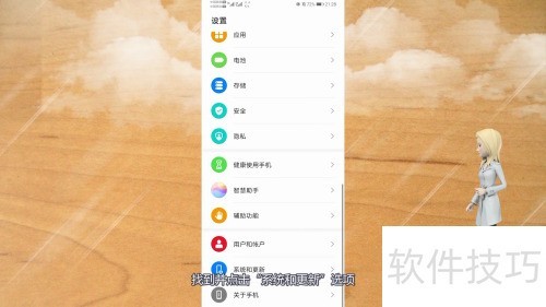 1、 打开手机设置应用,下滑找到系统和更新并点击进入。