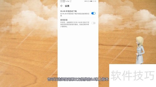 4、 开启WLAN自动下载功能后,系统在接收到官方最新安装包时会自动完成升级。