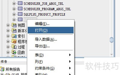 1、 启动SQL Developer,建立数据库连接,展开表目录,右键点击目标表,选择打开进行操作。