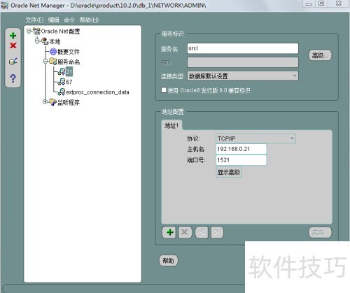 1、 在Oracle客户端的Net Manager中按图示配置,这是连接数据库的关键通道。
